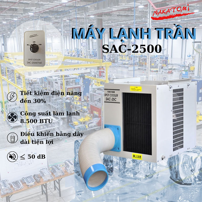 Máy lạnh treo trần Nakatomi SAC-2500 có chức năng giống với điều hòa treo tường nhưng lại tích hợp cục nóng và cục lạnh thành một khối, tạo kích thước nhỏ gọn, thiết kế đẹp mắt, làm lạnh khu vực cần thiết.