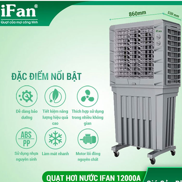 - Quạt hơi nước iFan 12000A cho luồng gió mát lên đến 12000m³/h tiêu diệt toàn bộ không khí nóng bức trong phòng.