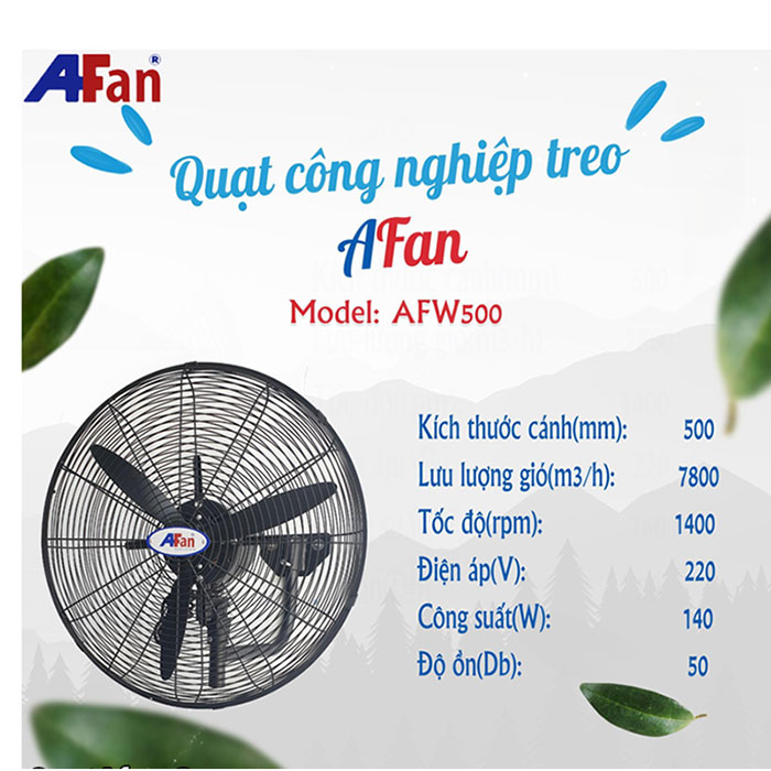 Thông số kỹ thuật của Quạt treo tường tường công nghiệp Afan AFW-500