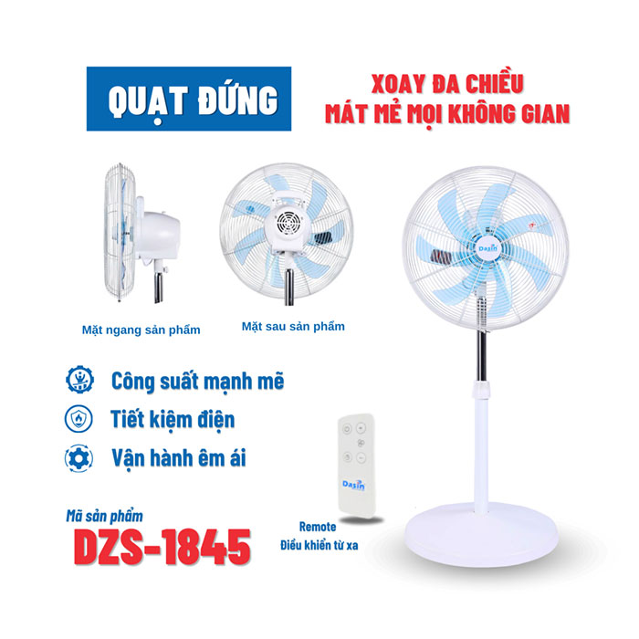 Thông số kỹ thuật của Quạt đứng đảo 360 độ Dasin DZS-1845